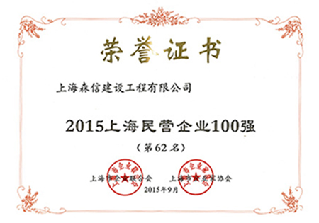 2015年9月榮獲“2015年度上海民營(yíng)企業(yè)100強(qiáng)”