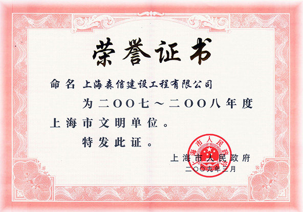 2015年8月榮獲“2014年度“上海市建筑業(yè)誠(chéng)信企業(yè)”