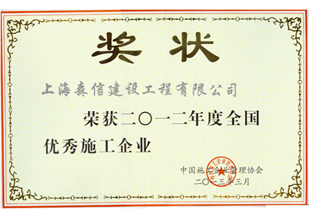 2012年3月榮獲全國(guó)優(yōu)秀施工企業(yè)